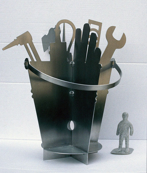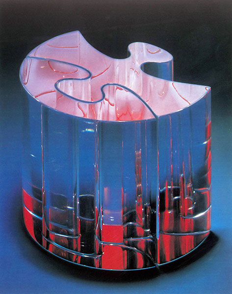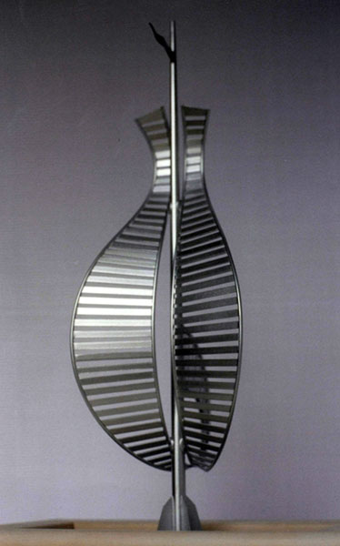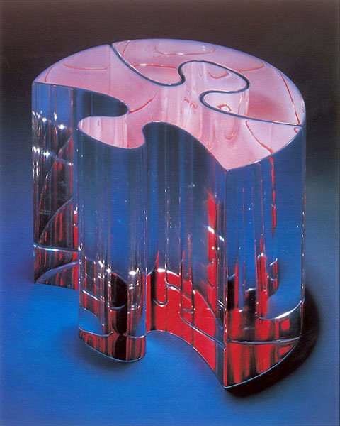 Carved pine, aluminium leaf, stainless steel